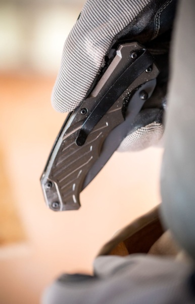 Тонка, легка алюмінієва ручка, що повторює контури пальців призначена для більшого комфорту користувача. Складаний кишеньковий ніж оснащений штифтом для великого пальця, що полегшує відкривання.