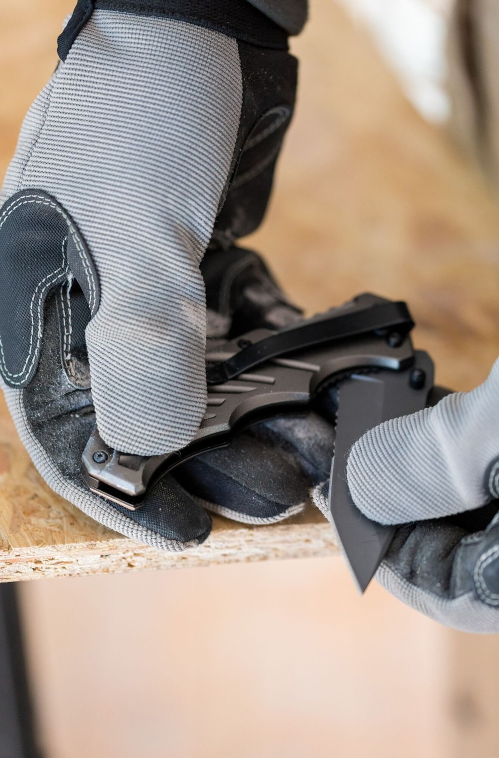 У меня такой нож уже второй год используется, причем не только для работ по дому - подрезать там кабель, снять оплетку или еще что-то, но и часто ним пользуюсь во время поездок на охоту. Таким Stanley Fatmax легко резать даже проволоку - кромка у него не скалывается, острота сохраняется вот уже столько времени. Я его купил в Мойо по совету приятеля, который много лет работает прокладчиком электросетей и по работе таким пользуется. Модель имеет небольшие размеры, вес незначительный - карман этот нож не сильно оттягивает. Раскладной механизм надежный, лезвие выдвигается плавно, рукоять удобной толщины.