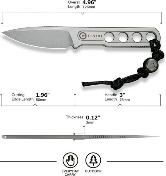 Простий дизайн суцільнометалевої конструкції, що поєднується з гострим, як бритва, клинком, перетворює мініатюрну модель Civivi Circulus завдовжки всього 126 мм на ефективного помічника в повсякденних завданнях.