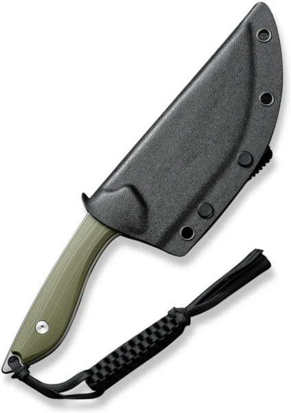 Вигнутий контур руківʼя підвищує якість утримання. Цьому також сприяють дві текстуровані плашки зі склопластику G10. У ножі передбачена захисна гарда та отвір для темляка. Загострений кінчик руківʼя можна використовувати як склобій.