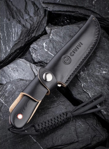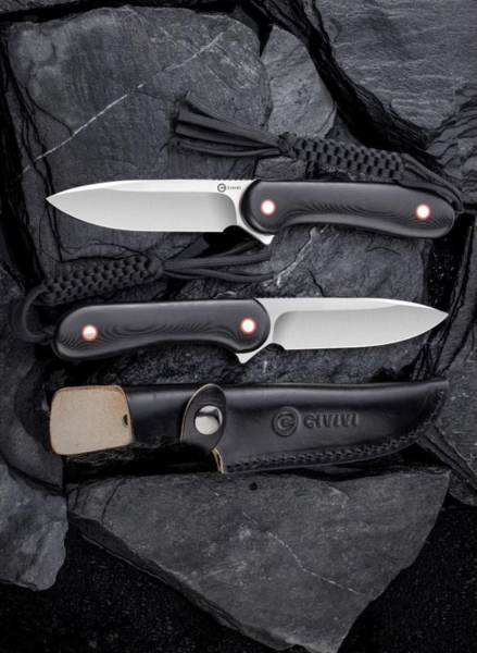 Бестселер бренду Civivi, складаний ніж Elelementum, тепер доступний у новому форматі з фіксованим клинком. Такий інструмент демонструє підвищену міцність і довговічність, оскільки конструкція має мінімальну кількість елементів, і розрахований на використання в польових умовах, наприклад, під час туристичних походів, полювання або риболовлі. На фінальному етапі виробництва клинок піддається сатинуванню. В результаті не тільки усувається блиск металу, а й подряпини та відбитки пальців на поверхні. Товщина клинка в обуху становить 3.5 мм, тому інструмент не боїться підвищених навантажень. В основі клинка є упор для великого пальця. За захист пальців відповідає гарда, яка не дає руці зіслизнути на пряме лезо під час сильного упору на кінчик леза. Руківʼя має округлу форму, що покращує утримання конструкції та підвищує загальний комфорт експлуатації без виникнення почуття втоми у зап'ясті. Матеріал руківʼя — склопластик, який не боїться впливу хімічних сполук, температурних перепадів та механічних пошкоджень. Крім того, цей композит не вбирає запахи та не втрачає колір у разі тривалого знаходження під прямими променями сонця. У наборі також є фірмові піхви з натуральної шкіри. Піхви застібаються на кнопку, щільно фіксуючи інструмент усередині, та оснащені петлею для кріплення на поясному ремені.