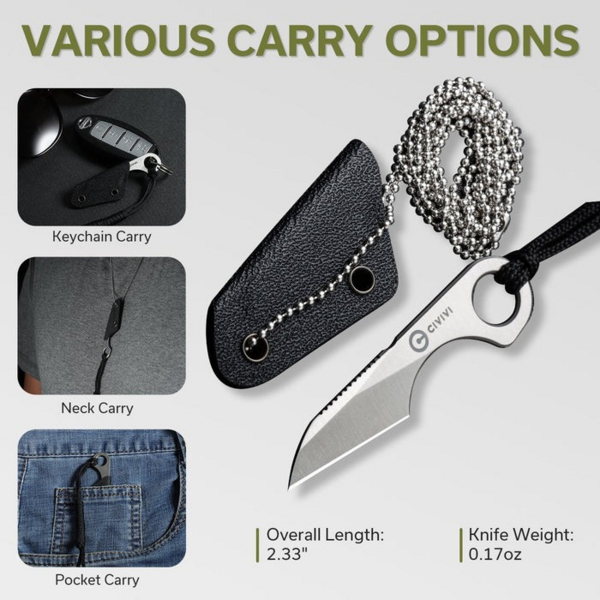 Ніж Civivi Gramis C23004-2 — це стильний та практичний складаний ніж, створений для щоденного використання. Його компактний дизайн та надійні матеріали роблять цей ніж чудовим вибором як для поціновувачів EDC, так і для тих, хто шукає універсальний інструмент. Лезо виготовлене з міцної нержавіючої сталі, яка відома своєю довговічністю, гостротою та стійкістю до корозії. Зручний механізм відкриття дозволяє швидко і безпечно розгорнути ніж. Ергономічна ручка забезпечує надійний хват і комфортне використання, навіть при тривалій роботі. Дизайн ручки виконаний з якісних матеріалів, які додають ножу стійкості та привабливого вигляду.