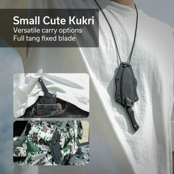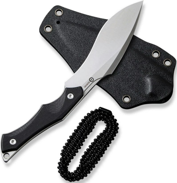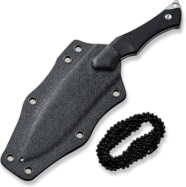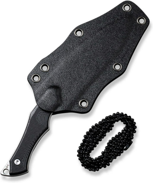 Комплект поставки включає чорні піхви з кайдекса, в яких фіксований ніж зберігається без люфтів і додаткових шумів під час транспортування. У піхвах є отвір для зливу води, а також сім отворів з боків аксесуара, які пропонують необмежену кількість варіантів носіння інструменту. У них можна протягнути шнурок і фіксувати піхви на поясі або лямці рюкзака. Сталевий ланцюжок, що входить до набору, підходить для носіння ножа на шиї.