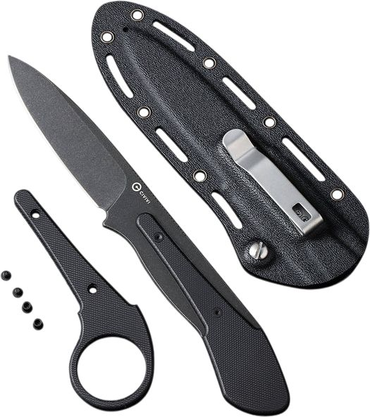 У розробці ножа Civivi Varius з фіксованим клинком drop point брав участь американський найфмейкер Аллен Елішевіц. Конструкція фултанг виконана зі сталі D2. У наборі є 2 типи накладок на руківʼя: класичної форми та з хвостовим кільцем. Накладки виготовлені зі склопластику G10. Для носіння призначені піхви з кайдекса.