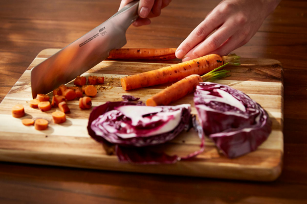 Принесіть радість до столу у вигляді фірмового салату або азіатської кухні з великою кількістю овочів. Ви зможете швидко і легко нарізати овочі за допомогою гострого розкішного кухонного ножа від Weber. Довгостроковість служби забезпечує високоякісна нержавіюча сталь. Завдяки елегантному дизайну фірмовий ніж підходить для будь-якої кухні.