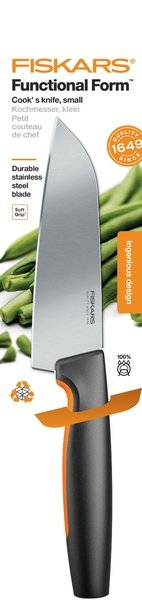 Для тих, хто цінує продумані, але водночас прості у догляді кухонні інструменти, малий кухарський ніж Fiskars Functional Form стане універсальним, повсякденним помічником. Лезо з міцної японської неіржавкої сталі чудово підходить для більшості завдань на кухні. Ергономічна ручка ножа має нековзне покриття SoftGrip, а упор для пальців забезпечить безпеку під час роботи. Як і всі ножі Functional Form, цей ніж можна мити в посудомийній машині, а його тонкий профіль спрощує зберігання. Розроблено у Фінляндії.