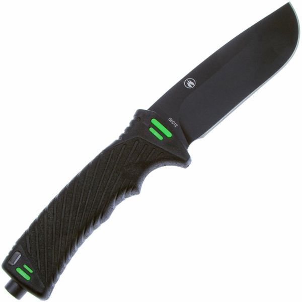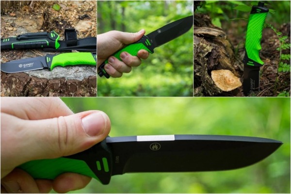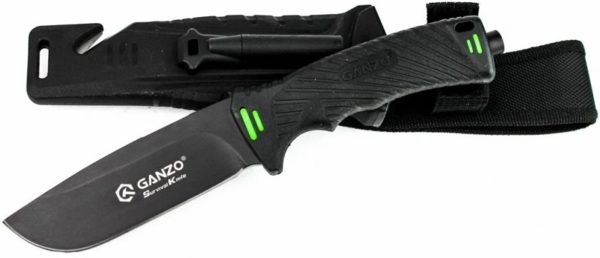 Ніж моделі Ganzo G8012 варто взяти з собою в подорож або турпохід, в будь-яку експедицію. Він створений таким чином, щоб прийти на допомогу своєму власникові навіть у найскладніші моменти. Основний матеріал ножа-сталь марки 7cr17. Вона містить велику кількість вуглецю і може бути загартована до 57 HRC. При цьому, корозійна стійкість сплаву без проблем дозволяє використовувати його в умовах підвищеної вогкості. Клинок жорстко зафіксований, що підвищує стійкість ножа до навантажень. 11,5 см із загальної довжини припадає саме на клинок, який має пряму заточку. Поверхня леза матова і чорна. Крім того, що такий ніж дуже стильно виглядає, він цілком може використовуватися в тактичних цілях.