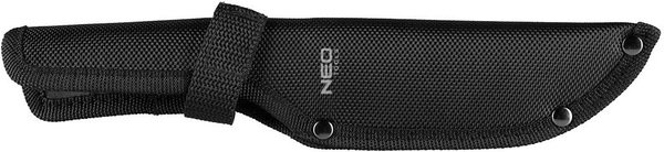 Ніж NEO, виготовлений з високоякісної нержавіючої сталі, стійкої до механічних пошкоджень, з сатиновим покриттям. Він є незамінним для походів у гори, кемпінгу в лісі або трекінгу. Лезо Full-tang з міцною дерев'яною ручкою забезпечує хороший захват і високу міцність. Ніж має виїмку для відкривання пляшок на лезі та нейлоновий чохол.