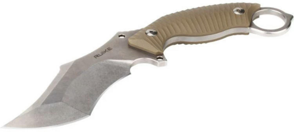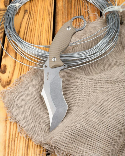 Ruike F181 — це ніж фіксованого типу, виконаний у стилі "Керамбіт", що робить його ідеальним вибором для тактичних завдань, самооборони та активного відпочинку. Його конструкція базується на популярній моделі P881, але на відміну від неї, F181 має цільний клинок, що забезпечує ще більшу міцність і надійність у важких умовах.