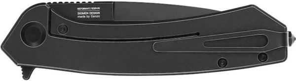Модель є вдосконаленою версією ножа Ganzo з преміальної лінійки Adimanti, одного з бестселерів бренду. Оновлення торкнулося матеріалів, використовуваних у виробництві. Це зробило складну конструкцію ще більш витривалою і стійкою до корозії. Замість сталі D2, з якої виготовлені базові ножі Adimanti, клинок цієї версії виготовлено з мартенситної марки CPM S35VN, яка є найпопулярнішим матеріалом у ножовій промисловості завдяки надійності та продуктивності, якими наділяє клинки ця сталь. Завдяки однорідній структурі з включенням 14% хрому і 1.4% вуглецю метал стійкий до зносу і має високу опірність іржі, навіть якщо конструкція регулярно піддається впливу вологи. Лезо твердістю на рівні ±60 HRC демонструє стабільне різання без утворення дрібних дефектів, як-от деформація ріжучої крайки та поява відколів. Клинок із профілем drop point досягає 8.5 см у довжину, а товщина обуха дорівнює 3.5 мм. Щоб вийняти лезо з рукояті, досить натиснути на плавник фліппера. Під час виконання силових робіт користувач може покласти великий палець на ребристий упор, що знаходиться біля основи клинка. Матеріал рукоятки - титан із покриттям чорного відтінку. Серед переваг титану: висока питома міцність і мала щільність, що сприяє зниженню загальної ваги ножа до 92.3 г проти 120 г у базових моделей. Крім того, титан характеризується надзвичайною корозійною стійкістю, оскільки на його поверхні є найтонша оксидна плівка. Ця плівка запобігає окисленню металу в разі потрапляння на поверхню крапель води, кислот і масел. У відкритому положенні довжина ножа досягає 20.5 см. Конструкцію доповнено однопозиційною кліпсою глибокої посадки, що повністю приховує інструмент у кишені. У хвості є склобій для застосування в екстреному випадку.