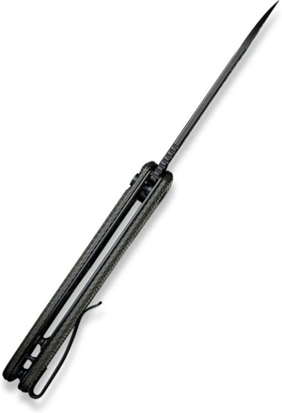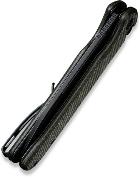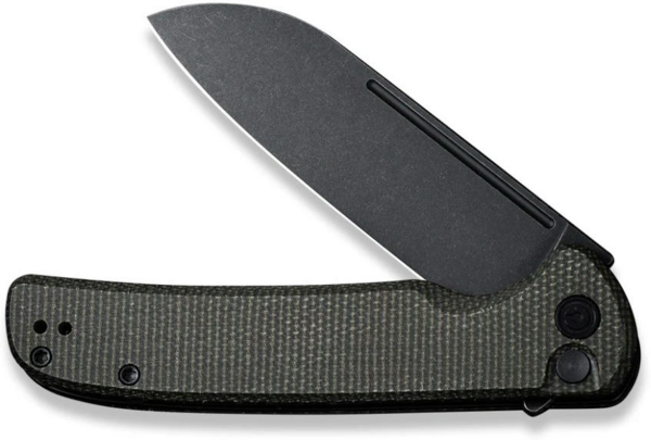 Клинок із незвичайною формою sheepfoot відрізняється плавним закругленням обуха вниз до різальної крайки. Таким чином знижується ризик випадкового нанесення колотих ран під час експлуатації інструменту, що позитивно позначається на безпеці використання. Сталь Sandvik 14C28N виступає матеріалом клинка. Це шведська марка з антикорозійними властивостями, яка загартована до твердості 57-59 HRC. Чорне покриття blackwash на металі не тільки є окрасою дизайну, але й несе практичну користь: воно робить клинок ще міцнішим і запобігає його окисленню.