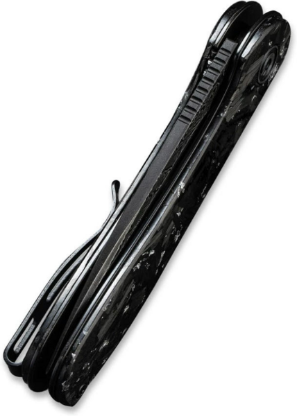 Рукоять ножа не поступається клинку в ефектності. Матеріал накладок - вуглецеве волокно (карбон) із включенням частинок смоли. Із сильних сторін карбону: стійкість до зношування, ударних навантажень, впливу високих і низьких температур, а також несприйнятливість до вологи. На рукояті можна закріпити темляк - для цього передбачено хвостовий отвір.