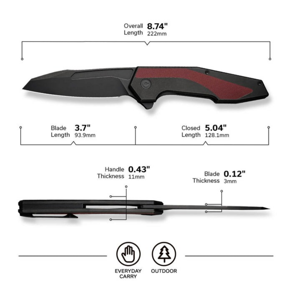 Складаний ніж Civivi Hypersonic C22011-3 — це сучасний та стильний інструмент, що поєднує в собі інноваційний дизайн і високу функціональність. Лезо виготовлене з преміумсталі, що забезпечує відмінну ріжучу здатність, тривалу гостроту та стійкість до корозії. Завдяки своїй агресивній формі, лезо підходить для різноманітних завдань, від повсякденного використання до більш складних робіт. Ручка ножа зроблена з титану та карбону, що не лише забезпечує міцність, але й додає ножу естетичної привабливості та легкості. Механізм відкриття на основі фліпера дозволяє швидко та плавно привести ніж у робочий стан однією рукою. Додатковою зручністю є міцна кліпса, яка надійно фіксує ніж на поясі або у кишені.