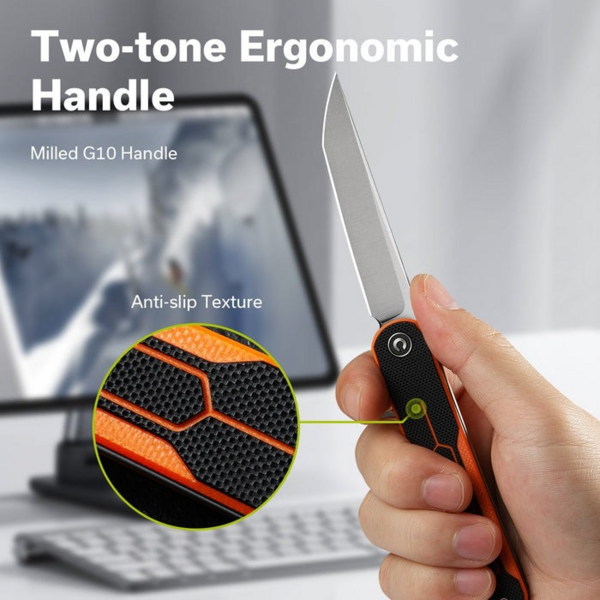 Складаний ніж Civivi KwaiQ C23015-2 — це стильний та високофункціональний інструмент, розроблений для щоденного використання. Лезо виготовлене з сталі, що забезпечує тривалу гостроту, надійність та стійкість до корозії. Витончене, гостре лезо з drop-point геометрією підходить як для точних робіт, так і для повсякденних задач, надаючи універсальність і ефективність. Ручка ножа виготовлена з легкого і міцного титану з накладками з карбону, що не тільки додає ножу стійкості до зношування, але й робить його стильним та ергономічним. Механізм фліпера забезпечує плавне та швидке відкриття однією рукою, роблячи ніж зручним у використанні. Також оснащений надійною кліпсою для кріплення на пояс або в кишеню, що робить його чудовим вибором для щоденного носіння. Цей ніж поєднує в собі інноваційний дизайн, якісні матеріали та високу продуктивність.