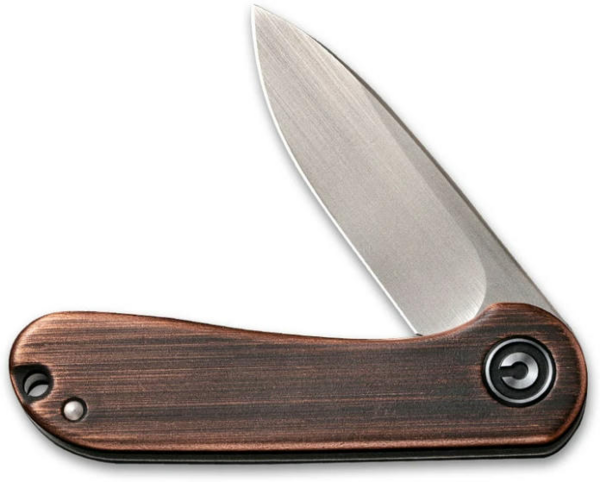 Товщина леза дорівнює 2.2 мм. Воно розкривається за допомогою сталевого плавця та утримується у відкритому положенні завдяки пружній пластині замку frame lock. У руківʼї поєднуються два матеріали: з одного боку це нержавіюча сталь, з іншого — мідний сплав, який є окрасою дизайну. У хвості зроблено круглий отвір для темляка. Кліпса у цій моделі відсутня.