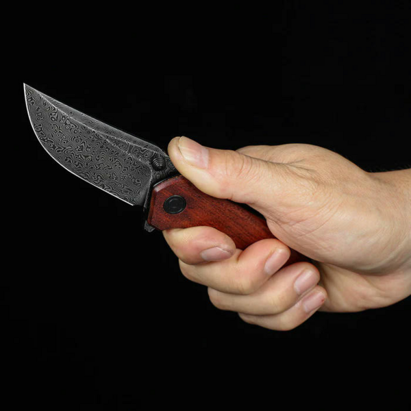 Клинок ножа виготовлений із дамаської сталі. Метал відрізняється не тільки видатною твердістю на рівні 58-60 HRC, але й унікальним зовнішнім виглядом поверхні з дрібними візерунками, які є окрасою конструкції. Завдяки вмісту кількох видів металів дамаська сталь також відома своєю стійкістю до корозії та тривалістю утримання заточування, що дозволяє скоротити частоту обробки прямого леза до мінімуму.
