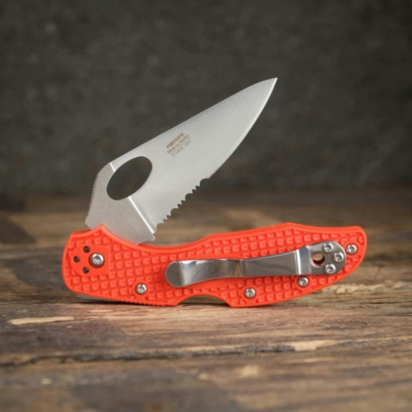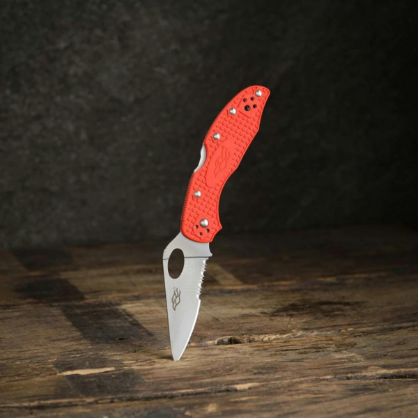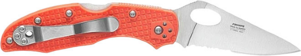 Модель F759MS - мініатюрний ніж зі складною конструкцією, яка легко поміщається в кишені та підходить для повсякденного носіння. Модель призначена для експлуатації в повсякденних, побутових цілях, але також актуальна під час заміського відпочинку. Ніж оснащений витонченим клинком довжиною 75 міліметрів і товщиною 2.8 міліметрів. У ньому присутній овальний отвір, який не тільки сприяє зниженню загальної ваги конструкції, але і полегшує розкриття інструменту. Для цього необхідно вставити палець в отвір і розкрити клинок до фіксації. Клинок утримується у відкритому положенні внаслідок замка Back Lock - простого в експлуатації механізму з підпружиненим важелем. Класичне пряме заточування - це універсальне лезо для більшості повсякденних завдань, у яких потрібен рівний розріз, водночас вирізняється тривалішим утриманням гостроти та призначений для виконання специфічних завдань. Зубчаста кромка ефективно впорається з різом волокнистих матеріалів, як-от стропи, мотузки та канати, а також дає змогу швидко зрізати дрібні гілки або заточити дерев'яні кілки. У виробництві клинка F759MS застосовується сталь 440С. Це поширена, інструментальна марка з включенням великої кількості хрому, що наділяє метал стійкістю до появи іржі. Сталь невимоглива в догляді. Для цього достатньо дотримуватися стандартних правил: витирати інструмент насухо після кожного використання та уникати його зберігання у вологому середовищі. Дизайн доповнює пара чорних накладок, виготовлених із синтетичного матеріалу - нейлону з додаванням скляної маси. Таке з'єднання робить матеріал пружним, зносостійким і дає йому змогу уникнути деформації під час тривалого впливу екстремально високих температур. Ближче до хвоста конструкції знаходиться наскрізний отвір для темляка, а з правого боку руків'я - знімна сталева кліпса, що підвищує зручність носіння моделі в кишені.