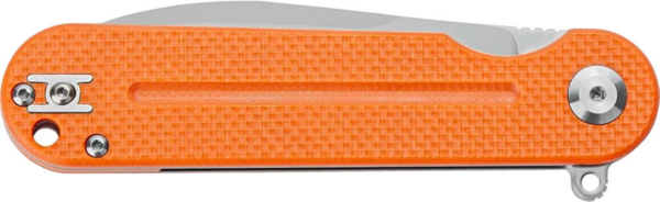 Рукоятка виконана з G10 — склотекстоліту, який стійкий до ударів, вологи, температур і зношування. Його шорстка поверхня забезпечує надійне зчеплення навіть у мокрій руці. Завдяки цьому ніж комфортно утримується при будь-якому хваті. Фліпперна механіка ножа працює плавно й надійно — відкриття та складання виконується однією рукою. Liner-lock забезпечує фіксацію клинка в робочому положенні. Для щоденного носіння передбачена металева кліпса, яка дозволяє закріпити ніж на поясі, кишені або спорядженні.