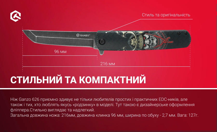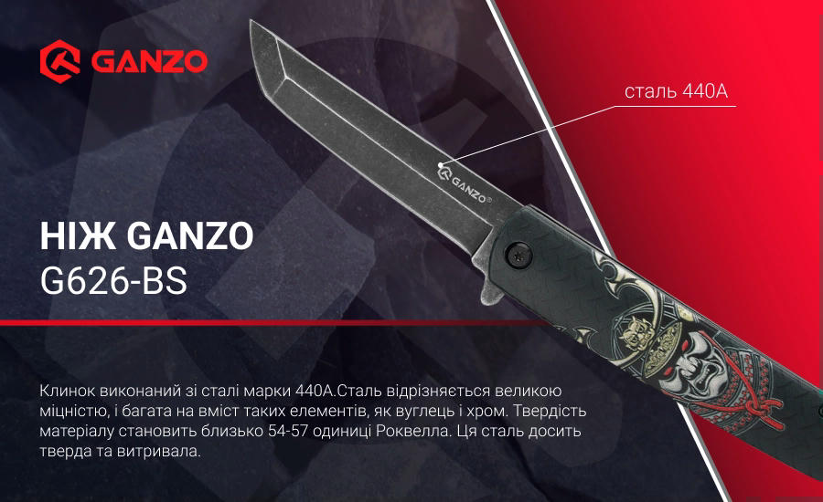 Опис Ніж складаний Ganzo G626-BS чорний самурай