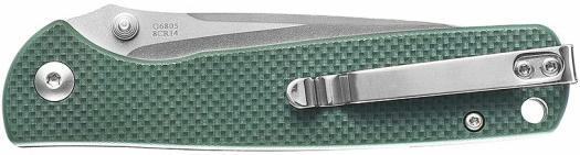 Модель G6805 має складну конструкцію, що складається з клинка форми Drop Point і ергономічної рукояті з текстурованими накладками з G10. Матеріал клинка-сталь 8Cr14MoV з включенням хрому порядку 14.5%, який робить метал нержавіючим. Конструкція оснащена замком Liner lock. Її довжина в складеному вигляді дорівнює 112 міліметрів.