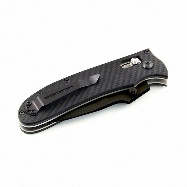 Матеріал клинка — сталь 440С, одна з найпопулярніших марок, що зустрічається в інструментах для щоденного носіння. Метал має високу стійкість до утворення іржі, оскільки до складу входить 17-18% хрому. Включення близько 1% вуглецю разом із термообробкою надає металу еталонну твердість 58-60 HRC. Чорне покриття на клинку позитивно впливає на характеристики міцності сталі. Крім того, воно є окрасою дизайну. Для відкривання конструкції призначений двосторонній шпеник. Штифтовий фіксатор Axis Lock є гарантом безпеки, намертво блокуючи лезо під час використання.