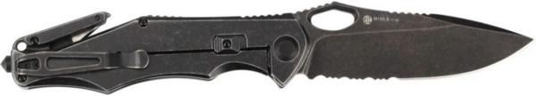 Однією з особливостей тактичного інструменту M195 є наявність комбінованого заточування на клинку довжиною 108 мм. Лезо з прямою крайкою підходить для акуратного різання, в той час, як серейтор підвищує ефективність роботи з мотузками, канатами та іншими волокнистими матеріалами, а також з деревиною. Сталь клинка додатково оброблена за технологією black stonewash. Вона надає поверхні матовість, прибираючи блиск і приховуючи подряпини, і робить її чорною.