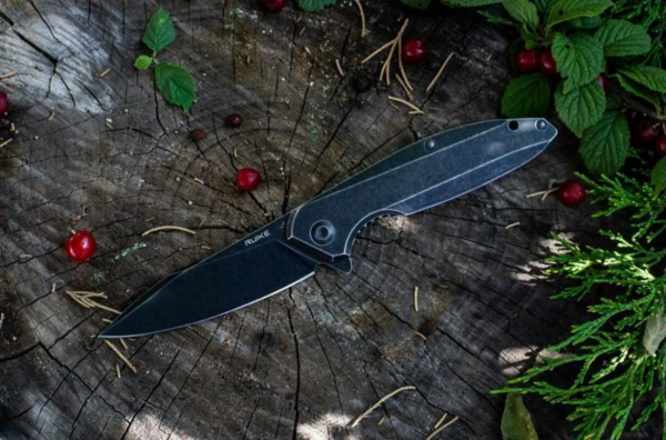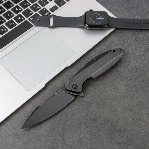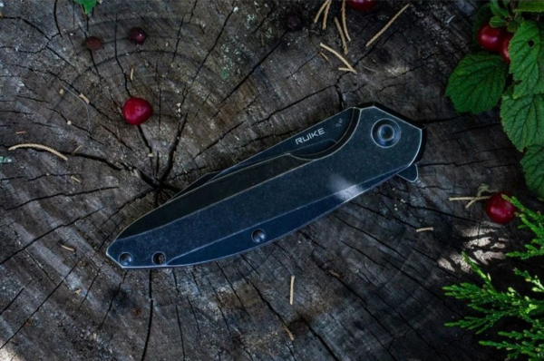 У моделі Ruike P128-SB велика увага була приділена дизайну, завдяки чому ніж отримав привабливий і водночас дещо брутальний вигляд. Клинок і рукоятку покрили захисним чорним покриттям, після чого обробили методом Stonewash, що надало корпусу характерних оригінальних потертостей і фактурності.