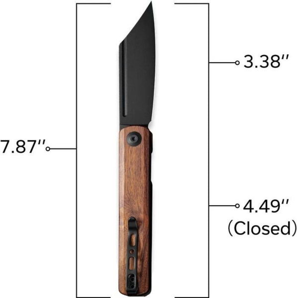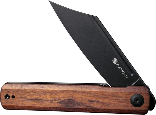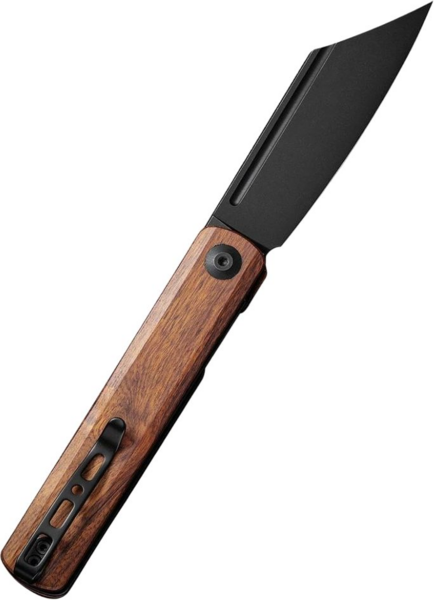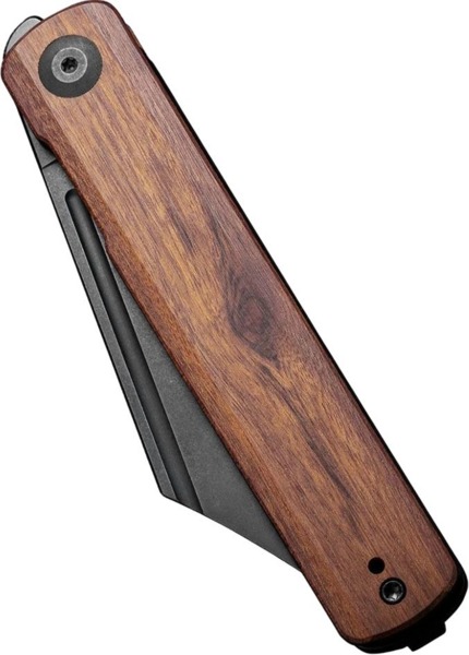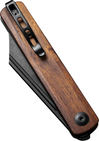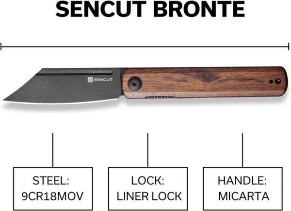 Лезо вивільняється за допомогою фліпера. Цей механізм працює дуже плавно завдяки керамічним підшипникам, що розміщені в центрі. Саме ця модель відрізняється надзвичайною гострою, яка справляється з безліччю завдань. Цей метал захищений від корозії, демонструє хорошу зносостійкість. Твердість загартування складає до 58 HRC. Лезо має додаткове покриття Black Stonewashed для маскування дрібних подряпин. Невелика товщина леза в поєднанні з гарним заточуванням забезпечує високу ефективність процесу різання. Таке лезо довго зберігає гостроту, заточити ніж в домашніх умовах досить просто. На відміну від інших ножів цього бренду, ручка ножа виготовлена з натурального матеріалу високої якості. Ручка Guibourtia виготовлена з дерева. Красива темна деревина твердих порід, яка чудово лежить у руці. Також ніж має зручну кліпсу для носіння. Можна прикріпити її до будь-якої сторони ножа, таким чином буде зручно носити ніж як з правого боку, так і зліва. Sencut Bronte SA08E – це чудовий інструмент для повсякденного використання та виконання різноманітних завдань під час активного відпочинку, кемпінгу, а також риболовлі. Такий складаний ніж також може стати гарним варіантом для подарунка для поціновувачів ножів.