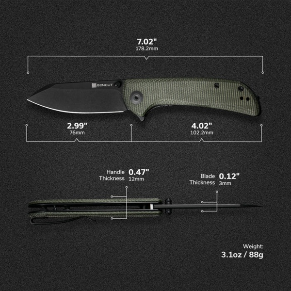 Ергономіка, ефективність і простота в носінні — це три основні риси, які роблять ніж Sencut Fritch інструмент для повсякденного використання. Модель має складану конструкцію, що розроблена за участю штатних дизайнерів бренду. Її довжина у відкритому положенні досягає 178.2 мм, але у складеному вигляді значення зменшується до 102.2 мм, спрощуючи транспортування інструменту. На це також впливає наявність тугого кишенькового затискача зі сталі, який можна кріпити як з правого, так і з лівого боку руківʼя. Клинок має незвичайний профіль для EDC ножів під назвою «spey point». Він відрізняється різким переходом обуха до вістря, ближче до кінчика ножа, забезпечуючи делікатне різання матеріалів різного ступеня щільності. Відсутність тонкого вістря разом із товщиною клинка, що дорівнює 3 мм, продовжує термін служби інструменту, а пряма різальна крайка легко піддається заточуванню. Сталь 9Cr18MoV належати до ножових металів та є матеріалом клинка Sencut Fritch. Марка містить підвищену кількість хрому, що надає сталі антикорозійних властивостей, в той час, як вуглець підвищує її міцність до еталонного рівня. Темне покриття на клинку та його обробка методом гартування несе не тільки естетичну функцію, але й практичну користь — це робить метал менш схильним до зношування, а також приховує подряпини та відбитки пальців на поверхні. Доступні два способи відкривання ножа: за допомогою фліпера або двостороннього шпенька. Модель укомплектована замком liner lock зі сталевою пластиною, яка підпирає клинок у відкритому положенні та не дає йому закритися під час натискання на лезо.