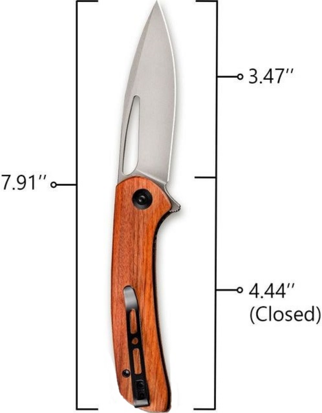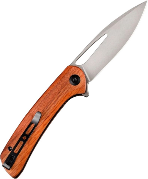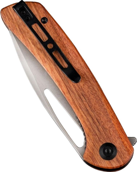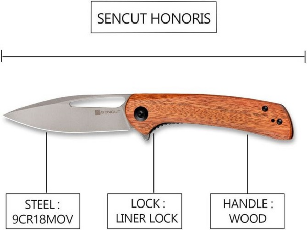 Sencut Honoris — сучасний кишеньковий ніж від Sencut. Відкрити ніж швидко і просто можна з використанням фліпера або відносно великого отвору для великого пальця. Завдяки кульковим підшипникам цей процес надзвичайний плавний. Коли ніж відкривається, лезо фіксується на місці надійним замком з нержавіючої сталі. Складаний ніж Honoris має сучасний вигляд завдяки поєднанню особливої форми ручки та леза. Лезо зроблено з 9Cr18MoV, це нержавіюча сталь, яка характеризуються міцністю і довговічністю. Цей метал добре протидіє корозії, демонструє хорошу зносостійкість. За властивостями наближений до 420HC і має твердість загартування до 58 HRC. Чудово зберігає гостроту, процес заточки швидкий та легкий. Ручка виготовлена з дерева. Це міцна деревина з незвичайною текстурою. Дерево має гарний вид, достатньо легке. Деревина без особливих зусиль може прийняти практично будь-яку художню форму завдяки своїй текстурі. Такий натуральний матеріал протягом століть використовувалося як матеріал для ручок.