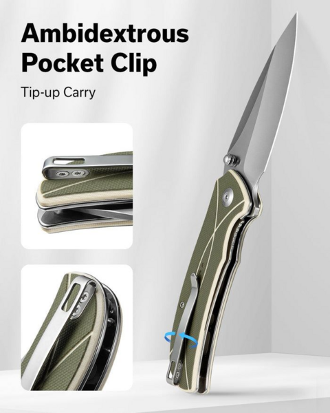 У складаному ножі Sencut Hyrax поєднуються ергономіка EDC інструмента та яскравий дизайн, притаманний виробам бренду Sencut та материнській компанії We Knife. Клинок із профілем leaf shaped нагадує форму деревного листа. Для цього на обуху було виконано — все для надання виробу більшої витонченості. Клинок виготовлений з нержавіючої сталі 9Cr18MoV, простої в обробці та стійкої до пошкоджень. Лезо з прямим заточуванням сягає 83,9 мм у довжину, забезпечуючи зручність під час різання більшості матеріалів. Тонке вістря ефективно справляється з роботою на укол. Щоб відкрити ніж, потрібно натиснути на плавець фліпера або на двосторонній шпеник. Клинок відкривається гранично плавно завдяки керамічним кульковим підшипникам та фіксується за допомогою замка liner lock. По обидва боки руківʼя закріплені рельєфні накладки зі склопластику G10, який відповідає за міцний хват. Матеріал не вбирає вологу та запахи, не тріскається при ударі та перепадах температури, тому інструмент можна використовувати за будь-яких умов, де потрібен надійний та довговічний помічник. Кліпса виготовлена зі сталі та є двопозиційною: користувач може кріпити її з правого або лівого боку руківʼя, адаптуючи під індивідуальні уподобання.
