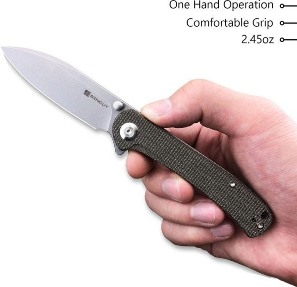 Ніж виготовлений з високоякісної легованої сталі. Метал збагачений вуглецем, що забезпечує гарний захист від корозії, ніж довго залишається гострим без додаткової заточки. Крім того, елементом виступає молібден та ванадій, внаслідок цього сплав менш ламкий та стійкий до навантажень. Лезо відрізняється міцністю і гостротою. Завдяки відшліфованому покриттю стають непомітними невеликі порізи, які з’являються при регулярному використанні. Варто звернути увагу на ергономічний дизайн. Ручка має реверсивний глибокий затиск для кишень і отвір для шнурка. Завдяки цьому роблять цей ніж легко зафіксувати на поясі, а також є можливість виконання будь-яких завдань з максимальним комфортом. Накладки ручки ножа виготовлені з Мікарту – незвичайно міцного матеріалу. Він складається з декількох шарів різних тканин (переважно лляних), що заливаються спеціальною смолою і під тиском твердіє. Смола, армована товстим шаром тканини, міцна та довговічна, такий матеріал не боїться вологи та великих температур. Завдяки такому покриттю ніж приємно тримати в руці, але деяким Мікарта може здатися злегка слизькою. Відкрити ніж можливо навіть однією рукою. Такий функціонал забезпечує керамічний кульковий підшипник. Ніж Sencut Scepter SA03F добре підходить для виконання різноманітних завдань під час полювання, активного відпочинку, кемпінгу або риболовлі. Проста конструкція та гостре лезо – все що потрібно для виконання складних задач в польових умовах. Конструкція проста, але надійна, такий виріб точно прослужить довго.