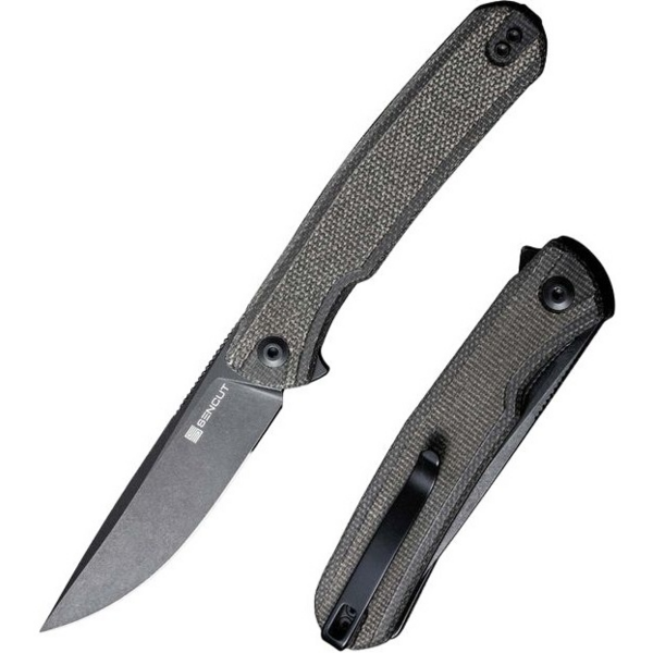 Клинок Sencut Scitus виготовлений зі сталі D2. Сталь загартована в діапазоні 58-60 HRC. Завдяки цьому матеріал надійно захищений від корозії. Високий вміст карбіду в мікроструктурі гарантує, що сталь швидко не стирається, тому ніж характеризується довговічністю. Невелика товщина леза і гарна заточка забезпечують комфортний і ефективний процес різання. На тильній стороні є спеціальна виїмка, на яку можна впевнено спиратися великим пальцем, це допомагає при проведенні робіт, що вимагають точності. Завдяки обробці Black Stonewash лезо має чорний колір, додаткове напилення добре маскує подальші подряпини, які можуть з’являтися під час використання ножа. Замок Liner Lock забезпечує необхідний комфорт і безпеку при використанні. У відкритому стані утворюється своєрідний щиток, що захищає руку від ковзання по лезу. Ручка виготовлена з Micarta, це композитний матеріал, спресований під тиском із синтетичною смолою. Крім того, матеріал гарний, довговічний, добре переносить перепади температури, не вступає в реакцію з багатьма хімічними речовинами. Завдяки цим якостям цей матеріал практичніший і довговічніший, ніж звичайний пластик чи дерево. Краї облицювання гладкі та забезпечують ергономічне та зручне захоплення. Завдяки особливій конструкції ніж легко чистити. Виробник оснастив ніж Sencut Scitus двостороннім затиском, тому його можна зручно та непомітно носити в кишені або рюкзаку. Також такий аксесуар комфортно транспортувати в кейсі на блискавці.