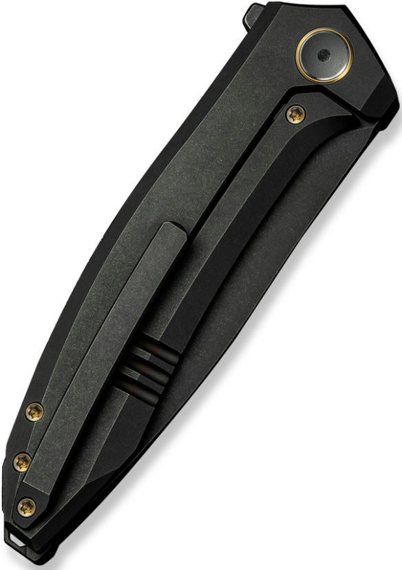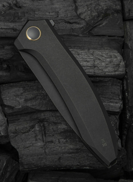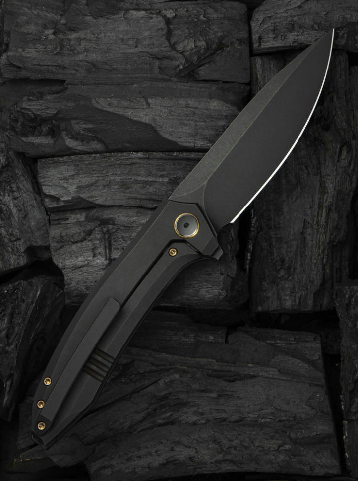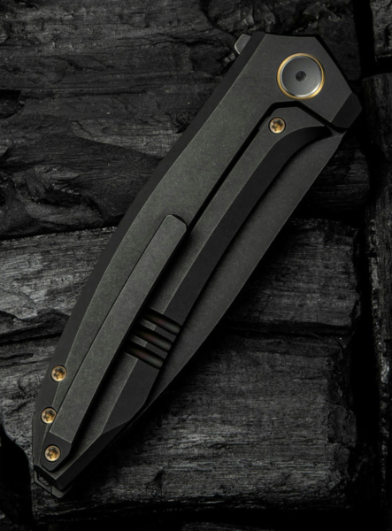 - Руків’я виготовлене з титану 6AL4V — сплаву, що поєднує виняткову міцність із повною стійкістю до корозії, навіть за умов регулярного контакту з вологою, кислотами та агресивними середовищами. Завдяки малій вазі титану загальна маса ножа складає лише 127,2 г, що робить його комфортним для щоденного носіння.