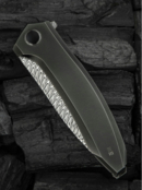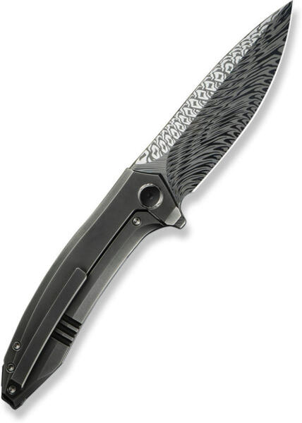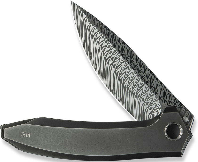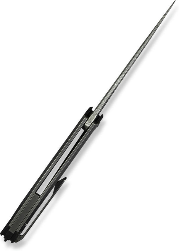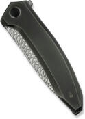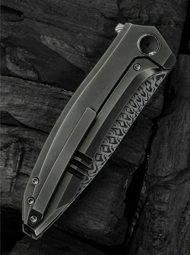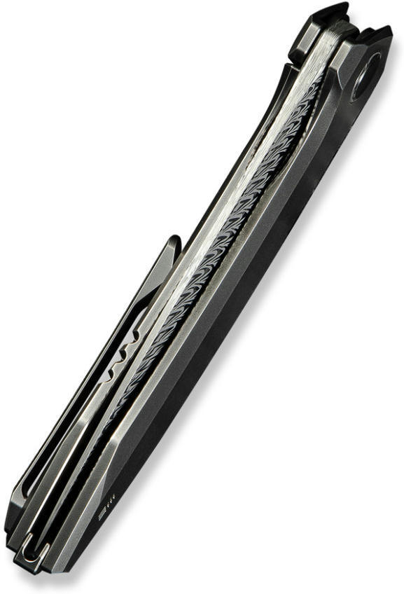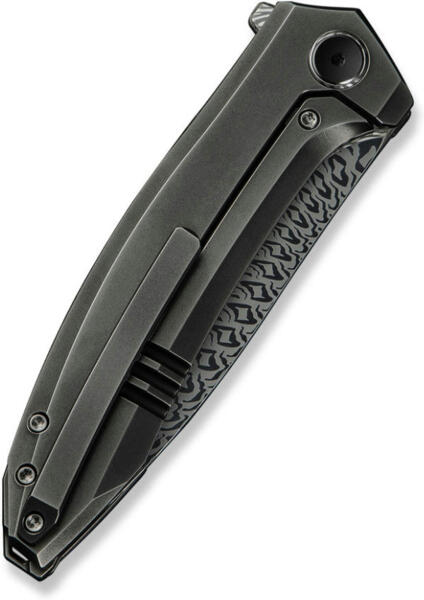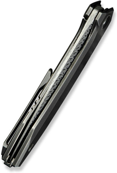 - Руків’я виготовлене з титану 6AL4V — сплаву, що поєднує виняткову міцність із повною стійкістю до корозії, навіть за умов регулярного контакту з вологою, кислотами та агресивними середовищами. Завдяки малій вазі титану загальна маса ножа складає лише 127,2 г, що робить його комфортним для щоденного носіння.