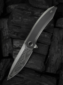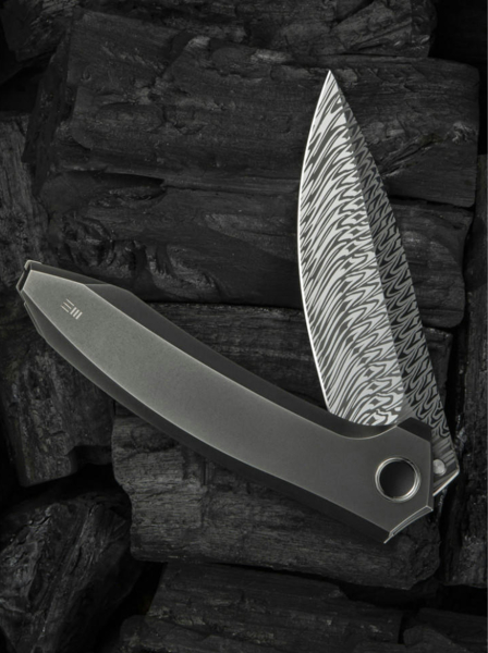- Клинок виготовлений із дамаської сталі Fafnir Damasteel — високоякісного шведського сплаву, створеного на основі поєднання традиційного кування та сучасних технологій. Його структура складається з двох марок сталі, що забезпечують високу міцність і твердість на рівні 59–61 HRC. Окрім чудової зносостійкості, матеріал вирізняється антикорозійними властивостями, а його унікальний візерунок із вигнутими лініями надає ножу ексклюзивного вигляду.