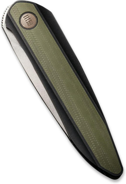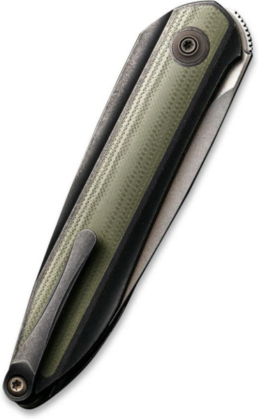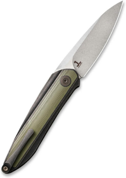 Клинок завтовшки 3.2 мм виймається з руківʼя за допомогою торцевого фліпера, на який можна натиснути як великим, так і вказівним пальцем. Осьовий вузол виконаний на підшипниках із кераміки. Як запірний механізм використовується простий в експлуатації замок liner lock. Руківʼя формується плашками з титану 6AL4V, інкрустованого вставками зі склопластику G10 зеленого відтінку. Дрібні деталі конструкції також виготовлені з титанового сплаву, що дозволяє знизити вагу ножа до 78.4 грамів.