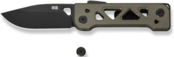Клинок Drop Point пройшов обробку методом галтування та має чорне покриття, що маскує подряпини й сліди відбитків пальців. Відкрити ніж можна, підчепивши клинок пальцем за трикутний отвір біля обуха. Завдяки симетричній конструкції ця дія зручна як для правші, так і для шульги. Плавність відкривання забезпечують керамічні підшипники в осьовому вузлі.