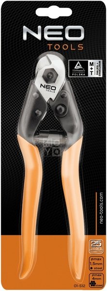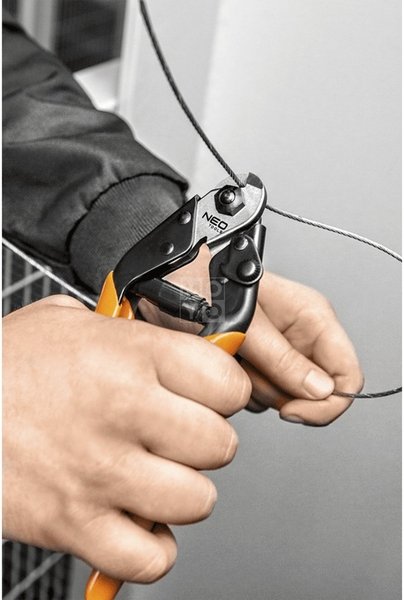 Ножиці для різання сталевого дроту та троса 1000 В NEO, розмір 190 мм. Загартовані губки ріжуть сталевий дріт із максимальним діаметром 1.5 мм, а також сталевий трос із максимальним діаметром до 4.0 мм. Високосортна хромованадієва сталь гарантує багаторічну міцність губок. Ергономічні ручки з ПВХ-покриттям підвищують комфорт експлуатації. Якість інструменту підтверджена сертифікатом TÜV та 25-річною гарантією виробника. Бренд NEO виправдовує очікування фахівців.