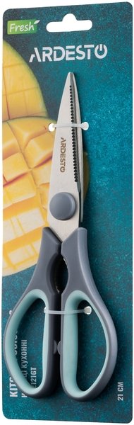- Ножиці кухонні ARDESTO Fresh 21 см, сірий/блакитний, нерж. сталь, пластик (AR2121GT)