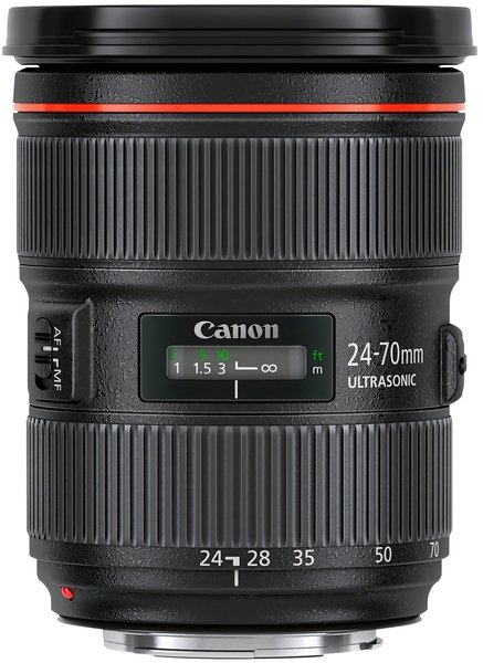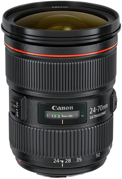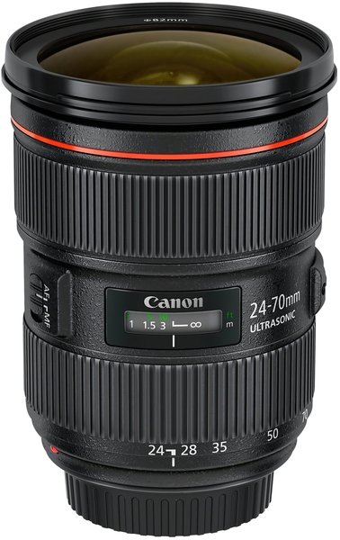 Основні характеристики Фокусна відстань 24 - 70 мм Діафрагма F2.8 Байонет Canon EF Автоматичне фокусування є Конструкція Число елементів/груп елементів 18/13 Число нізкодісперсних елементів 2 Число пелюсток діафрагми 9 Розміри (D x L) 88.5 x 113 мм Вага 805 г Параметри зйомки кут огляду 34 - 84 град.мин Мінімальна відстань фокусування 0.38 м Додаткова інформація Ультразвуковий мотор є Діаметр різьби для світлофільтру 82 мм