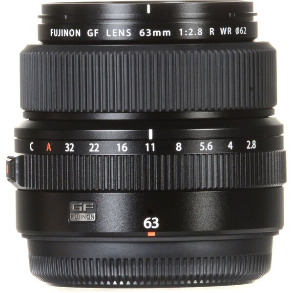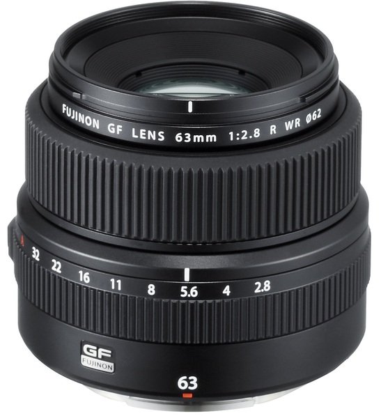 FUJINON GF63mmF2.8 R WR – нормальний об'єктив, спеціально сконструйований під новий байонет G Mount і матрицю 43,8 x 32,9 мм. Лінійка об'єктивів GF, яким під силу вирішення до 100 млн пікселів, поєднує новітні технології з великим ноу-хау, накопиченим при виробництві об'єктивів XF, для забезпечення гранично високої якості знімків і повної реалізації потенціалу нової среднеформатной беззеркальной камери GFX 50S. Інтуїтивне керування включає положення С на кільці діафрагми, що дозволяє встановлювати діафрагму диском керування на корпусі камери. Положення А (АUTO) і С тепер можна блокувати. Всі об'єктиви захищені від атмосферних впливів і пилу і до того ж можуть працювати при температурах до -10° C, що дозволяє знімати на відкритому повітрі, ні про що не турбуючись. Латунний байонет покликаний забезпечити міцність з'єднання. Об'єктиви цієї серії мають стати «робочою конячкою» професіоналів.