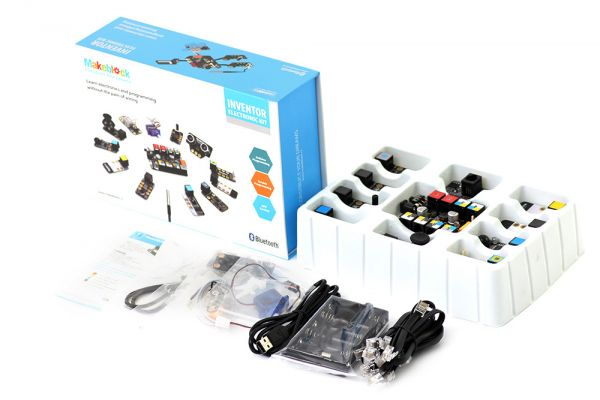 Набір Inventor Electronic Kit призначений спеціально для швидкого створення прототипу і безпосереднього програмування. У набір входять 12 датчиків і виконавчих пристроїв, що відповідають їм з'єднувачі для швидкого підключення і процесорна плата Me Orion. У кожен модуль зашита бібліотека Arduino для швидкого початку програмування. Крім Arduino, набір підтримує мови графічного програмування, такі як MIT Scratch і Ardublock, що ідеально підходять для навчання дітей азам програмування і взаємодії з апаратною середовищем. Bluetooth модуль дозволяє управляти процесом зі смартфона або планшета.