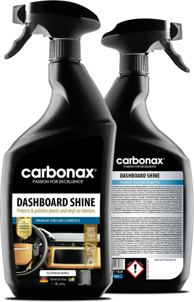 Примусьте приладову панель вашого автомобіля сяяти яскравіше, ніж будь-коли, за допомогою Carbonax Dashboard Shine! Цей спрей-глянець містить першокласні інгредієнти, які надають вашій приладовій панелі сяючого блиску та створюють захисний шар, що запобігає розтріскуванню і подряпинам.