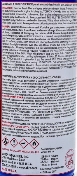 Очищувач Abro для карбюратора +20 340гр (4802693737) (CC-220)Очищувач Abro для карбюратора +20 340гр (4802693737) (CC-220)