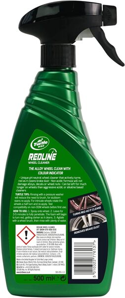 Очищувач дисків з індикацією Red Line Turtle Wax – потужний засіб для усунення найскладніших забруднень. Часто навіть після миття, на дисках автомобіля залишається застарілий бруд, який не змивається водою або піною. Завдяки новітнім детергентам, засіб швидко та безпечно видаляє будь-які забруднення з автомобільних дисків (сталевих, хромованих, легко сплавних, шліфованих, полірованих, пофарбованих) – засіб розчиняє бітум, гудрон, залишки олій, металеву стружку та пил від гальм тощо. При знищенні пилу та бруду набуває червоного кольору, що дозволяє візуально контролювати нанесення та подальше змивання. При цьому, засіб ніяк не шкодить поверхні диска, гумі та іншим навколишнім вузлам та агрегатам. Чи не токсичний. Засіб може застосовуватися для видалення забруднень на різних пофарбованих та незабарвлених поверхнях, а також для миття зовнішніх поверхонь двигуна автомобіля та всього підкапотного простору.
