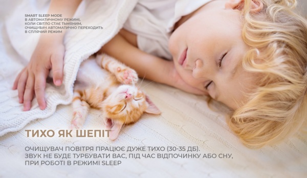 Дизайн приладу з прозорою круговою верхньою панеллю не лише виглядає футуристично, але й абсолютно безпечний для використання в приміщенні з дітьми. Очищувач не має гострих кутів, а також прилад автоматично вимкнеться якщо зняти захисні вентиляційні решітки. Крім того, затиснувши одночасно кнопки "Speed" Та "Mode" блокується панель управління, що гарантує збереження персональних налаштувань.