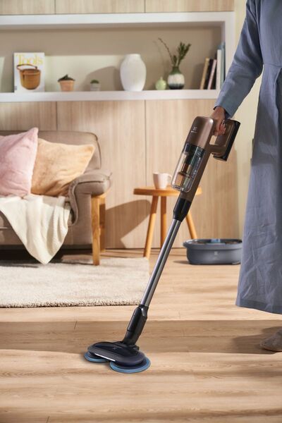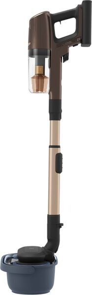 Пристрій має вбудовану функцію очищення, полоскання і сушіння насадки для вологого прибирання, оснащений подвійними резервуарами для води, які гарантують, що насадки промиваються чистою водою, а забруднена вода зберігається в окремому резервуарі.