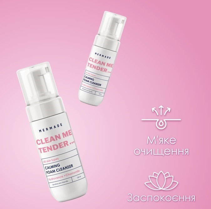 Очищаюча пінка для обличчя Mermade для чутливої шкіри обличчя на основі м'яких ПАР натурального походження, м'яко очищає шкіру і залишає відчуття м'якості і шовковистості. Зволожуючі компоненти і ромашка допомагають заспокоїти шкіру, залишають її зволоженою навіть після очищення. Пінка делікатно очищає шкіру обличчя від накопичених за день забруднень і надлишкового себума. Готує шкіру до подальшого догляду, залишає зволоженою і гладенькою після вмивання.