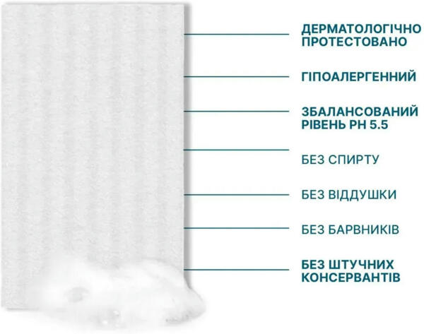 - Гіпоалергенна формула: мильна губка з pH 5.5 підходить для всіх типів шкіри, включаючи чутливу.